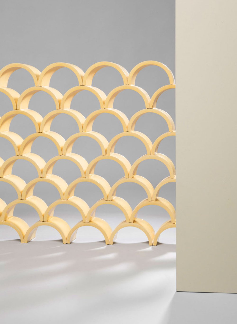 Κεραμικό στοιχείο μεγάλης μορφολογικής απλότητας σε σχήμα ημικυκλίου. Ο συνδυασμός τους δημιουργεί πλέγματα με όψη λεπιών ή πετάλων.