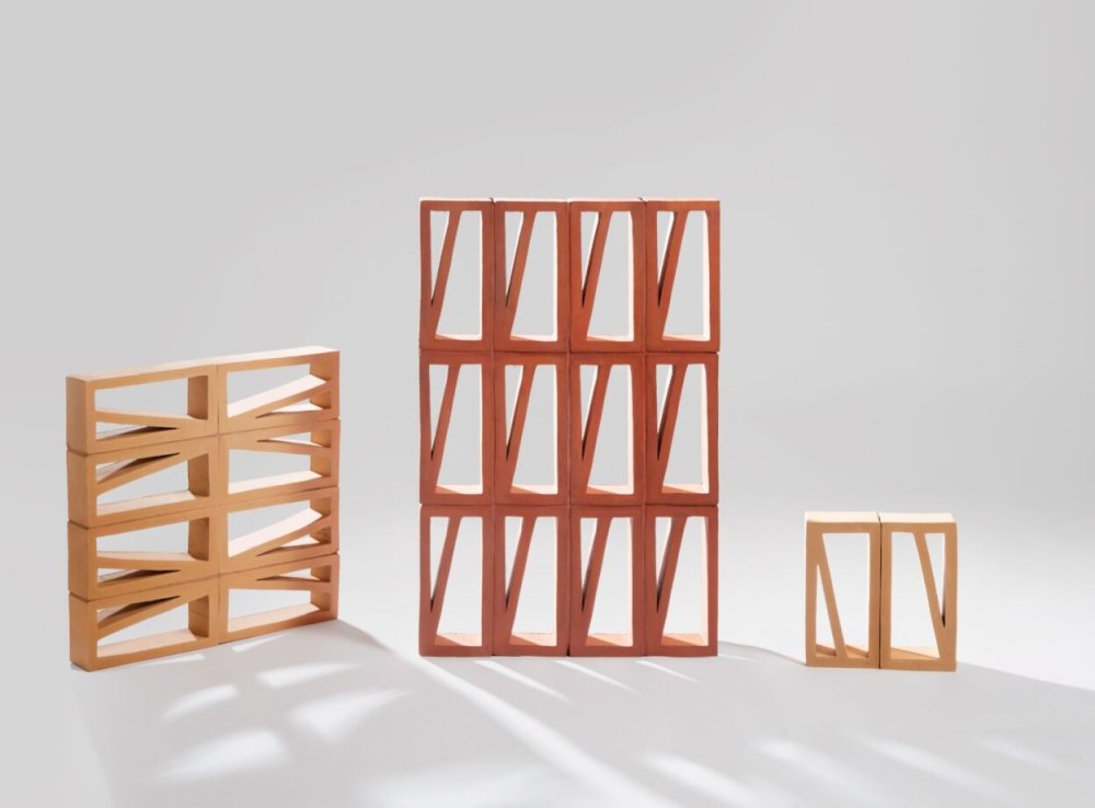 Ορθογώνιο κεραμικό στοιχείο με ασύμμεσο εσωτερικό διαχωριστικό, που προσκαλεί στη δημιουργία πλεγμάτων με πολύ διαφορετικά μοτίβα.