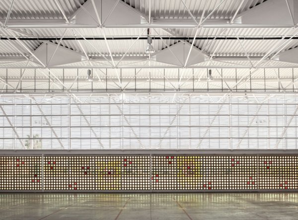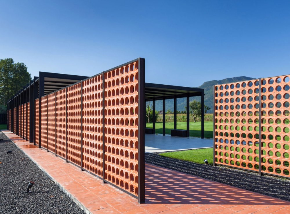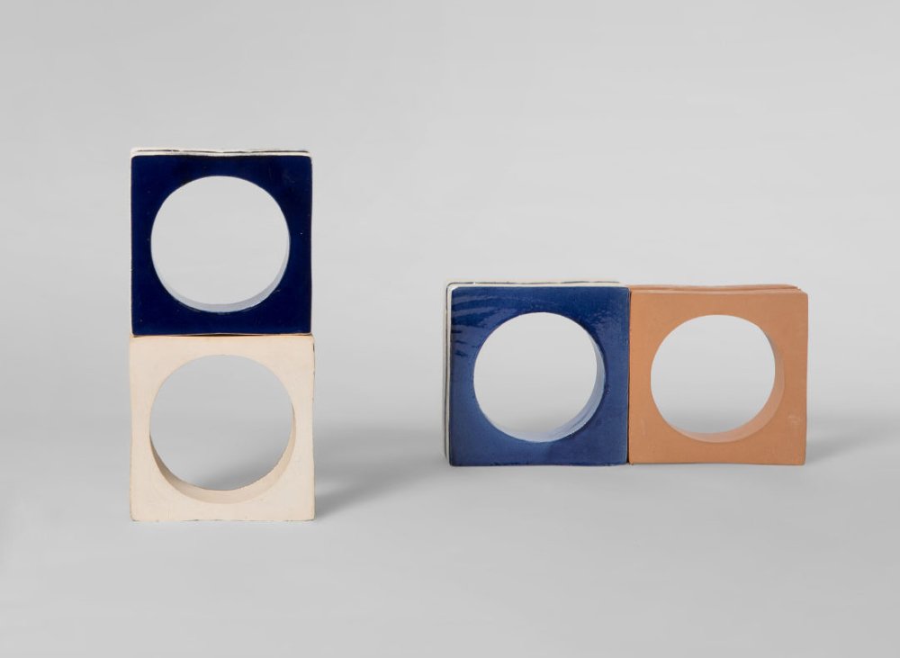 Ceramic piece of great formal simplicity which combines a square and a circle, creating sober and elegant latticework. In one of the models, the "cleft" in the piece's face allows the installation of crystals to create stained glass effects that combine color or transparency effects.