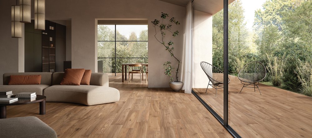 With Solonoce, Ceramiche Piemme reinterprets the essence of walnut in a ceramic collection for floors and walls, combining the tactile beauty of natural wood with exceptional technical performance.