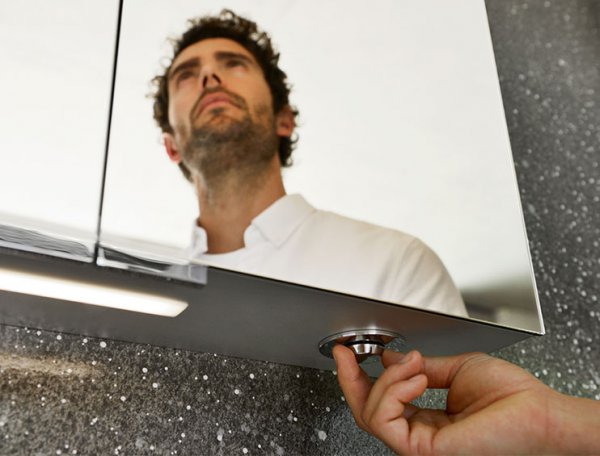Το πιο εντυπωσιακό χαρακτηριστικό της σειράς ROYAL UNIVERSE είναι η πλωτή ελαφρότητα της μορφής της. Το εμπρός καθρέφτη πάνω από το σώμα του ντουλαπιού, οι αντικατοπτρισμένες πλευρές και η οριζόντια κατασκευή των φωτιστικών συμβάλλουν σε μεγάλο βαθμό σε αυτό το αποτέλεσμα.
