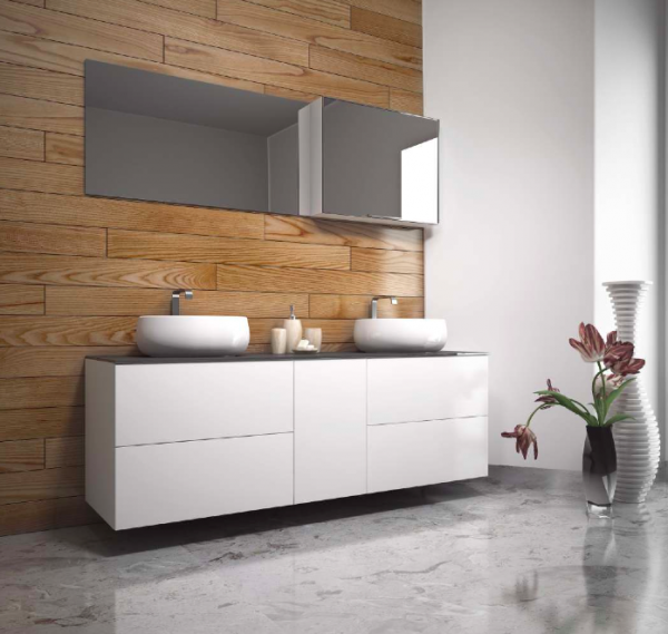 ¨Επιπλο Μπάνιου Κατασκευασμένα από Κον/κε Θαλάσσης σε αποχρώσεις RAL και Κον/κε Θαλάσσης με επένδυση Φυσικό Δρυς.