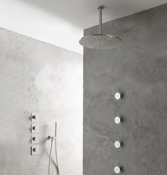 Another model characterized by a great visual impact is the up and down which is realized in brass with polished chrome finish. Straightforward lines and attractive design make this shower head suitable for people who love modern and stylish bathrooms. This shower set is conceived with a new cold thermostat that, even with the use of very hot water, does not overheat the mixers.