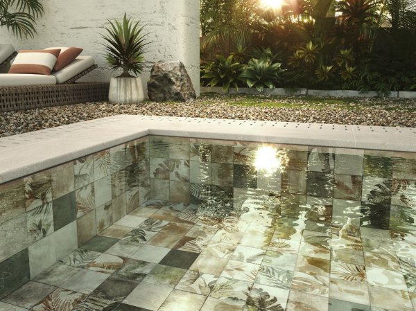 Τα τετράγωνα κομμάτια της Αμαζονίας, με μικρή μορφή (13,8 x 13,8) και λεπτομέρειες που ακολουθούν τη χειροποίητη τάση, είναι αυτά που είναι πιο πιστά στην ρουστίκ αφήγηση. Η μορφή εξάγωνου (32 x 36,8), από την πλευρά της, μεγιστοποιεί τη νέα βοτανική ιδέα και ιδιαίτερα εμπλουτίζει τον τρέχοντα χαρακτήρα της συλλογής με αυτό το γεωμετρικό σχήμα.