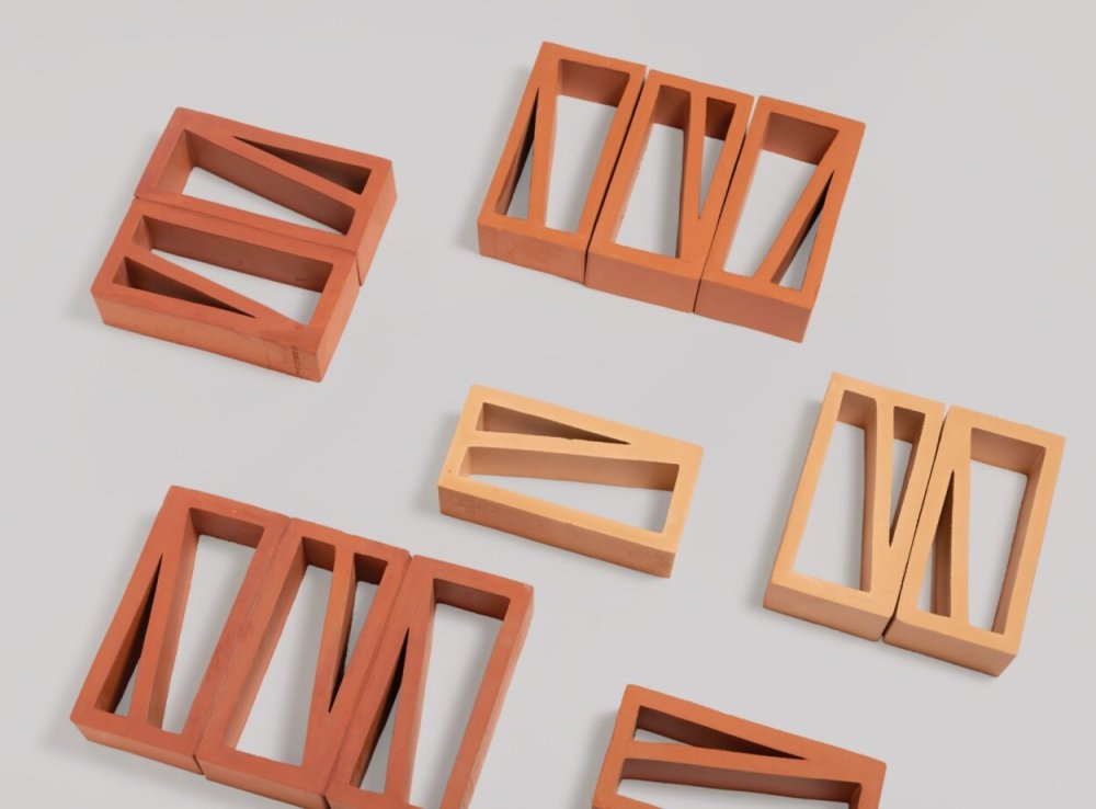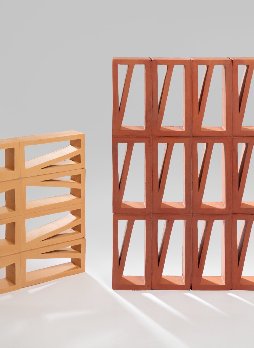 Ορθογώνιο κεραμικό στοιχείο με ασύμμεσο εσωτερικό διαχωριστικό, που προσκαλεί στη δημιουργία πλεγμάτων με πολύ διαφορετικά μοτίβα.