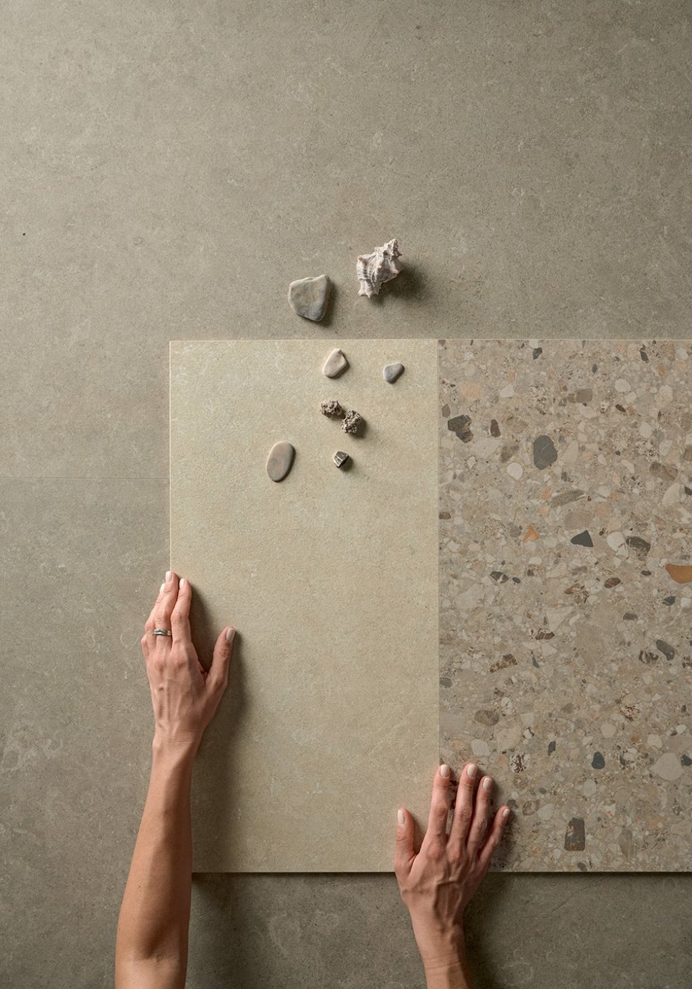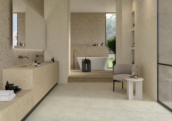 Με τη συλλογή Arkistyle, η Marca Corona συνεχίζει την εξερεύνηση στον κόσμο των πετρών, προσφέροντας έναν εκλεπτυσμένο συνδυασμό δύο συναρπαστικών παραλλαγών. Ένας ασβεστόλιθος που χαρακτηρίζεται από εγκλείσματα θαλάσσιων απολιθωμάτων που μόλις υπονοούνται και αναμειγνύονται με το φόντο, και μια εντυπωσιακή σύγχρονη επανερμηνεία του Terrazzo, που διακρίνεται από την παρουσία πολύχρωμων νιφάδων, που προέρχονται από ένα πολύ εκλεπτυσμένο αντίθετο αποτέλεσμα.