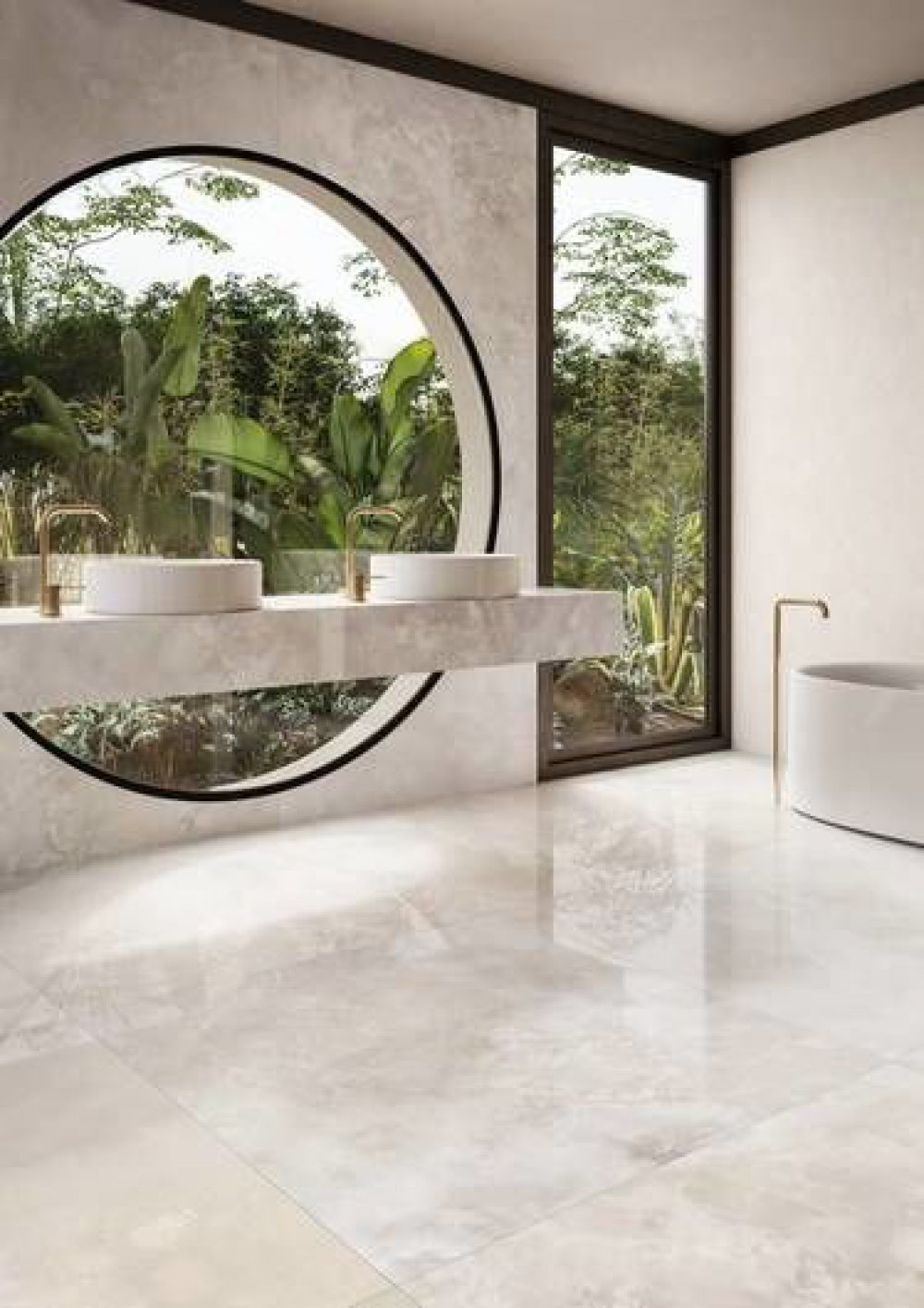 Πολύτιμη, ανθεκτική και φωτεινή, αυτή η μαρμάρινη πέτρα είναι το αποτέλεσμα της τεχνολογικής καινοτομίας που εφαρμόζεται στην εσωτερική διακόσμηση και δίνει βάθος στις ρυθμίσεις χάρη στα παιχνίδια του φωτός σε ανακλαστικές επιφάνειες.