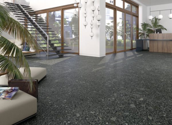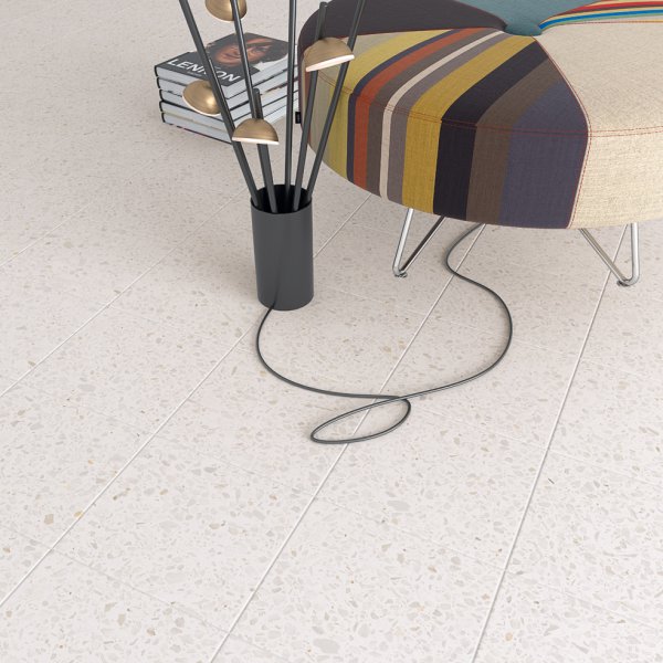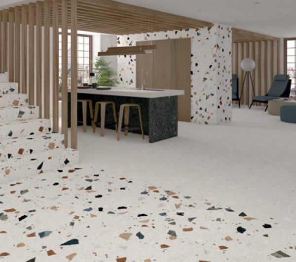 Το εκπληκτικό σχέδιο του πλακιδίου Stracciatella προσθέτει μια σύγχρονη και απλή πινελιά στις επιφάνειες, σε αρμονία με το σύγχρονο στυλ Art Deco των στοιχείων επίπλων και των δομών.