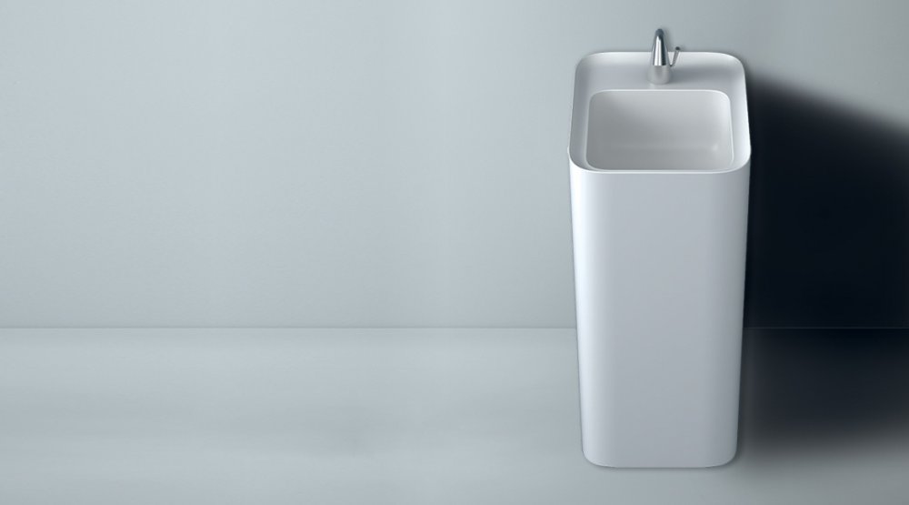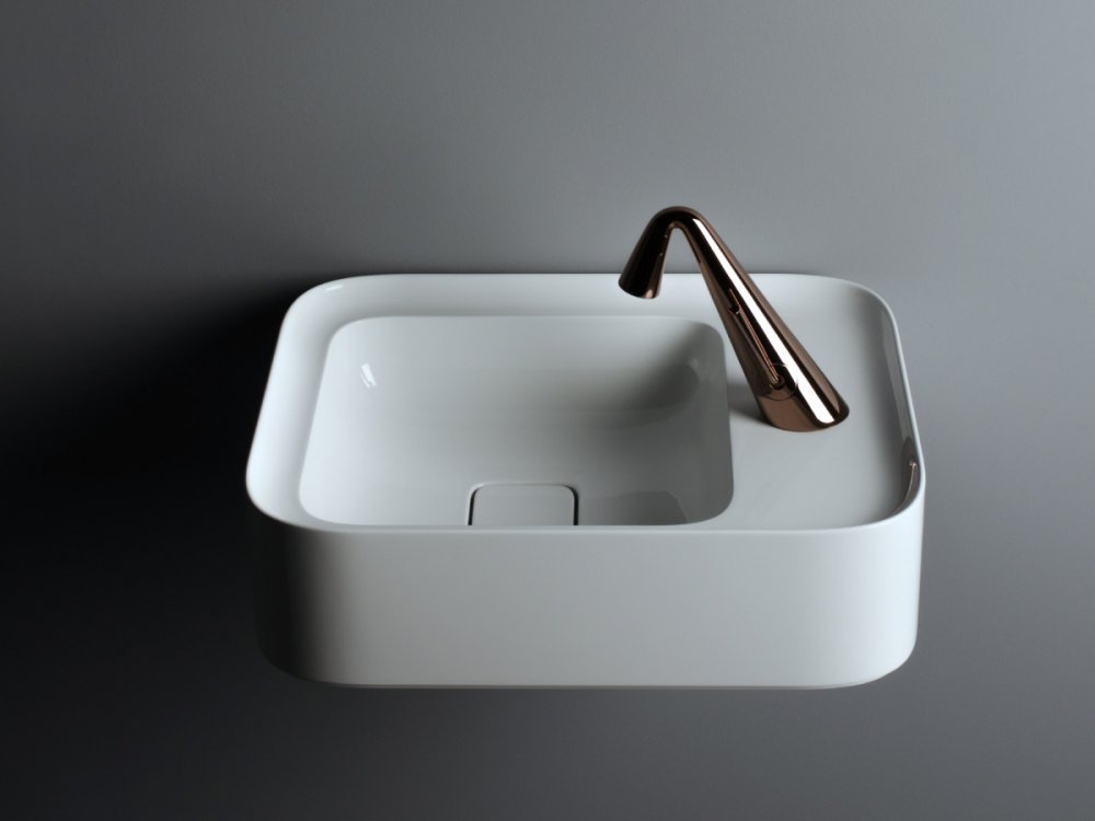 Μια συλλογή νιπτήρων που ερμηνεύει τα αρχέτυπα σχήματα της γεωμετρίας, για να τα μεταφέρει σε χειροτεχνικές εργασίες και να δημιουργεί απροσδόκητους όγκους. Κατατεθειμένο σχέδιο. Σχεδιαστής: Prospero Rasulo