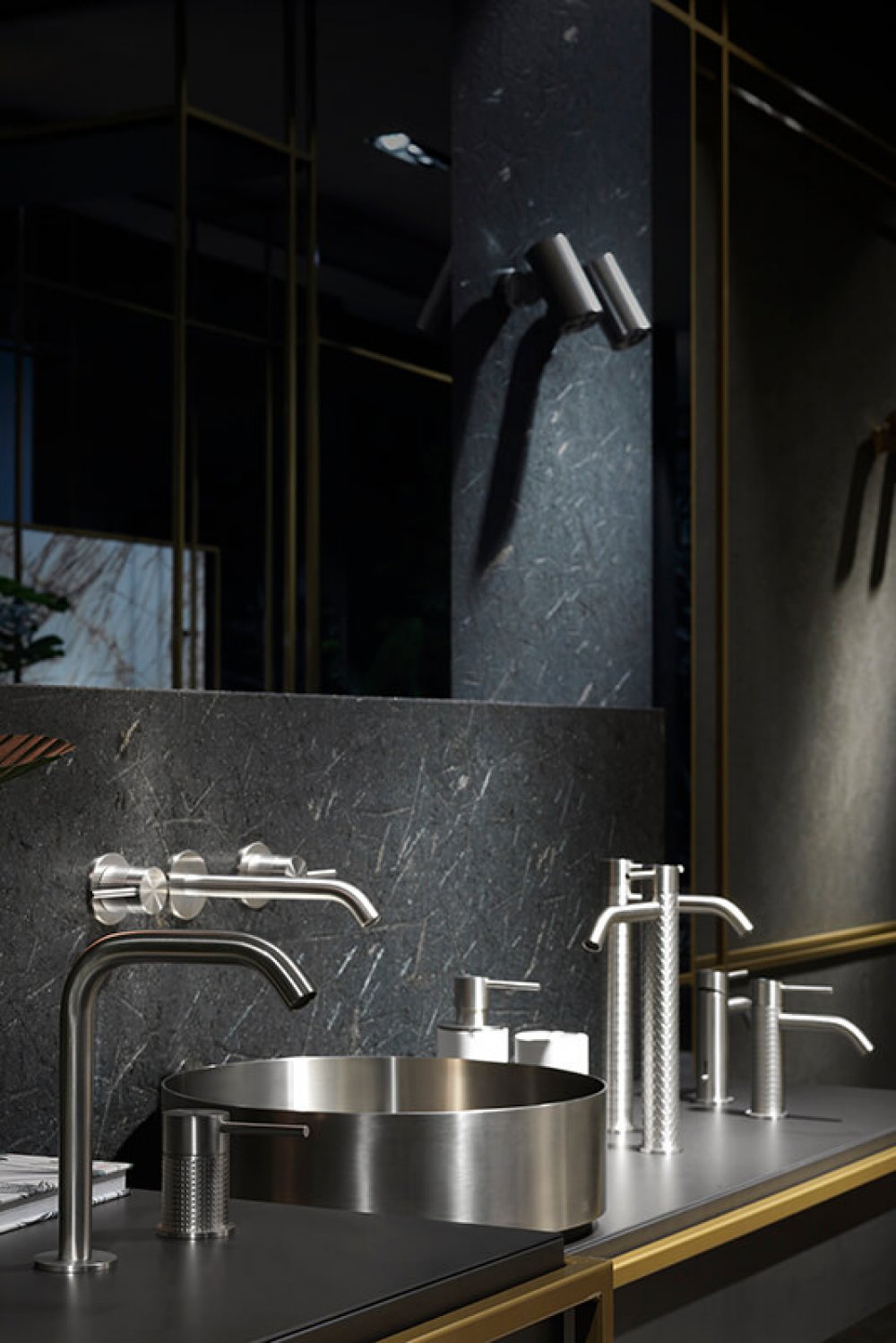 Η δημιουργικότητα και το στυλ Gessi έχει γνωρίσει στο χάλυβα μια αντιληπτικότητα εντελώς νέα, δίνοντας σε ένα υλικό συνήθως τεχνικό και "κρύο", μια μοναδική ζεστασιά, μια ειδική επίπλωση.