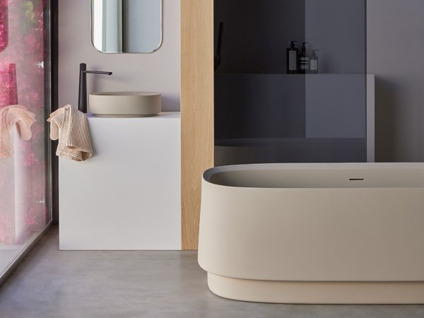 Νιπτήρας sanydur gel coat στο πάνω μέρος, ματ λευκό. ΔΙΑΣΤΑΣΕΙΣ 43x43x13h cm